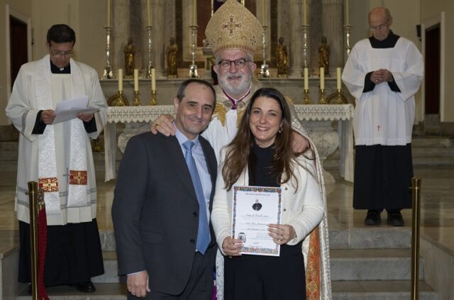 In a beautiful ceremony at the Cathedral of St Mary the Crowned, Bishop Charles Azzopardi gave out certificates to forty couples who were celebrating wedding anniversaries of 60, 50, 40, 20 and 10 years.