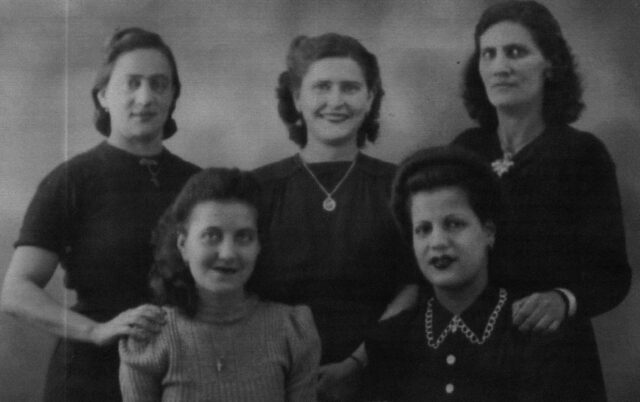 Shortly after arriving in London, Ms Chini found work in a war production textile factory in Princess Street, which was very near to the Dean Hotel. In the photo of the textile factory, Ms Chini is seen in the foreground wearing a greyish dress, holding a pair of scissors and sitting by a sewing machine. Behind her, in a whitish dress, is her cousin Violet Gatt.