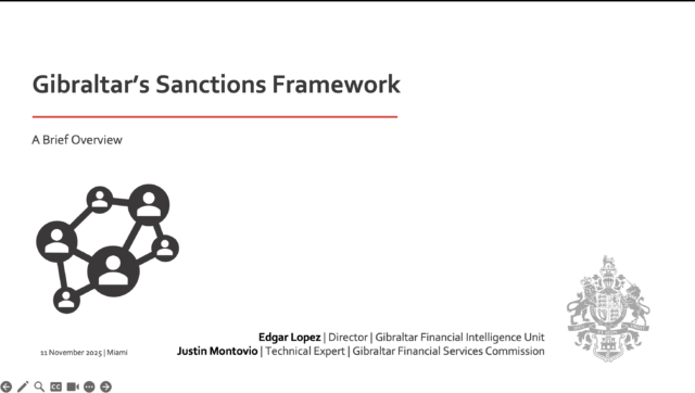 Gibraltar’s delegation presented an overview of its sanctions framework under the Sanctions Act 2019, detailing how international sanctions obligations are applied across relevant authorities. The presentation also emphasised the strong inter-agency cooperation supporting Gibraltar’s response to sanctions-related risks.