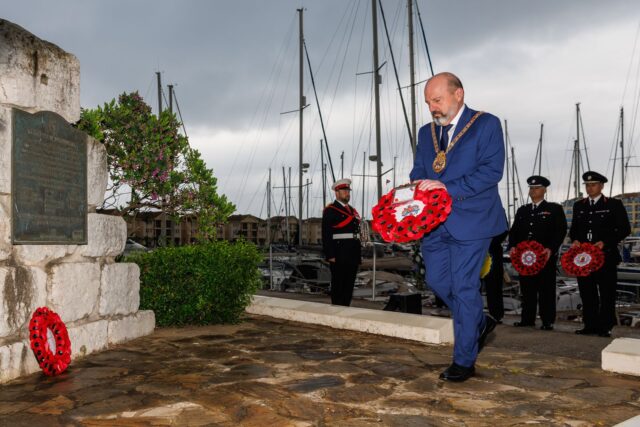 Also laying a wreath was Lin Fitch, the daughter of Merchant Seaman Bill Staples, who thanked Gibraltar for saving her father’s life.