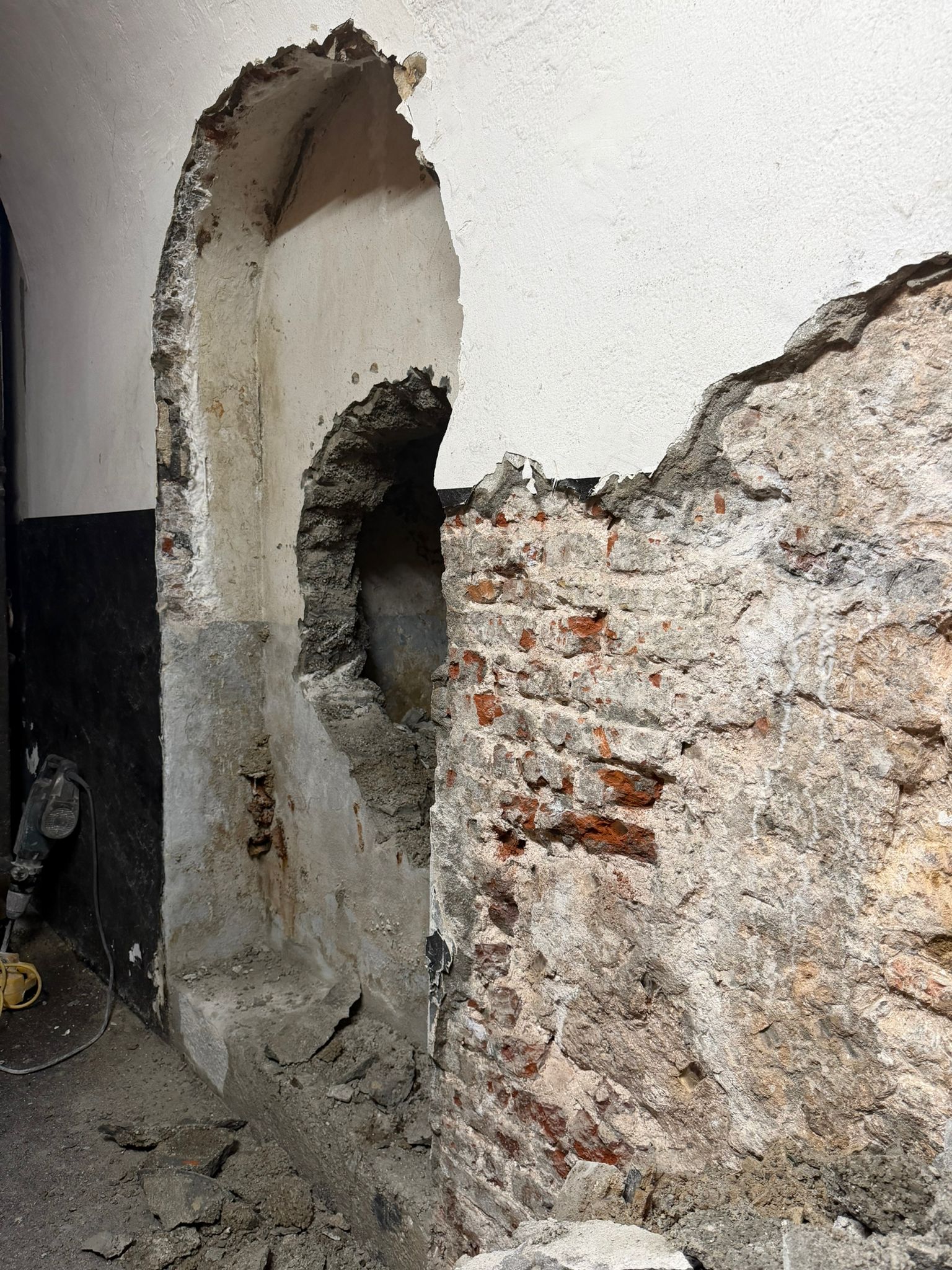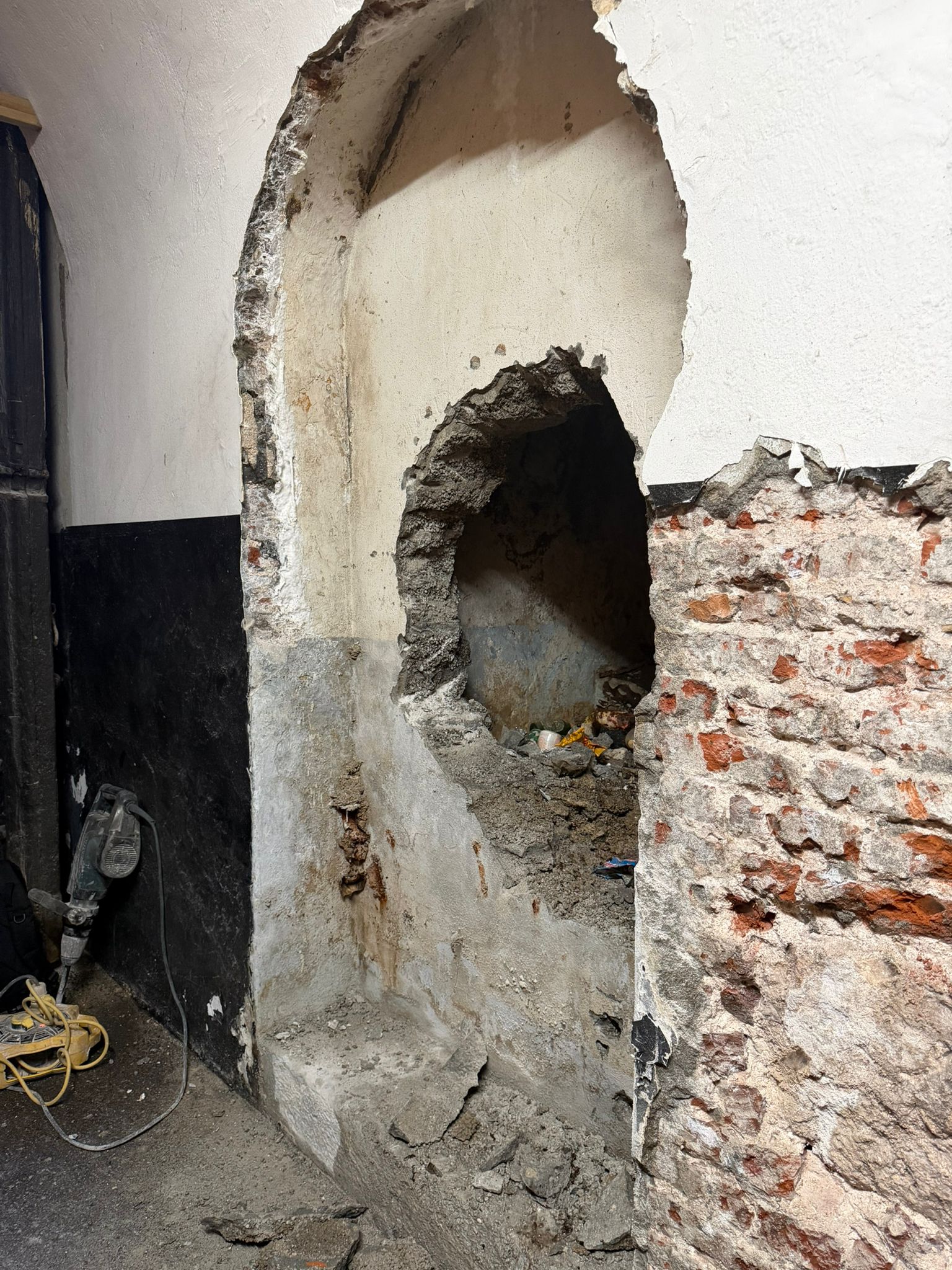 The discovery began when a team removed modern cement and mortar and exposed what appeared to be an historic doorway.