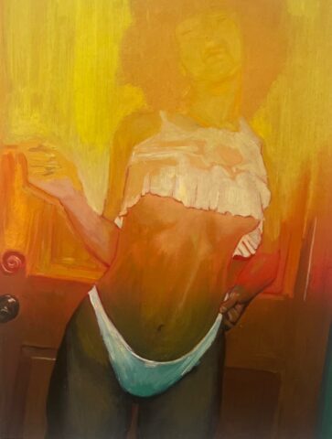 The pieces combine elements of scenes, memory, and digital influence and, in his works, Mr Ullger is interested in translating fleeting, everyday moments into something more permanent through oil painting.