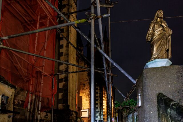 Works continue on other areas of the façade, which will not affect churchgoers entering or leaving the premises.
