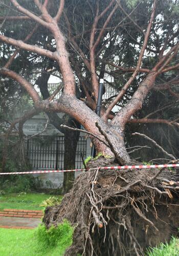 In La Línea, flooding was reported in several areas, while strong wind gusts brought down trees and branches and damaged part of the cemetery perimeter.