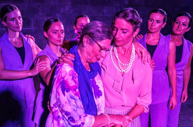 Mother and daughter, Carol and Claire Trinidad, hold on to each other in their portrayal of Margaret and her younger self. Photos by Johnny Bugeja.