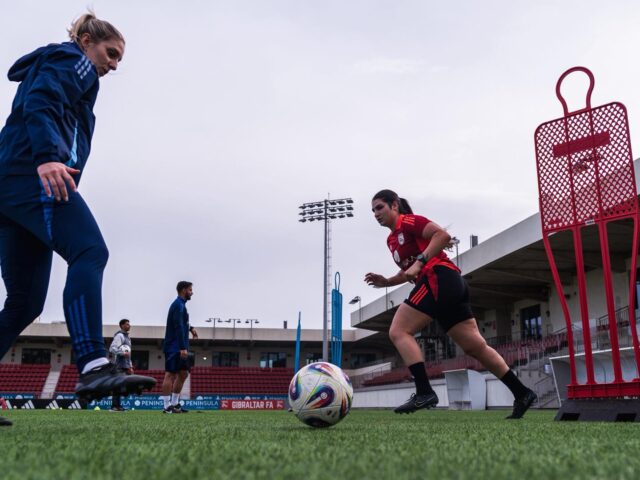 The squad, all of whom are amateur players, swapped their club shirts for Gibraltar training kits as they stepped onto the field at Europa Sports Stadium under the guidance of head coach Stella Gotal.