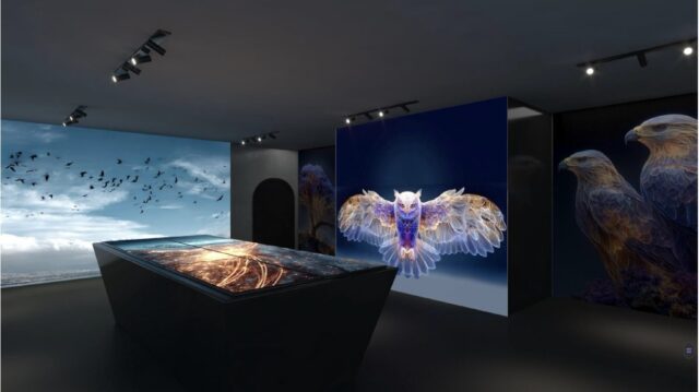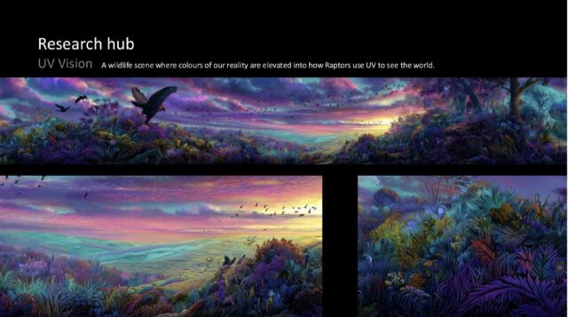 There will be four looping video experiences. One, the UV Vision scene reveals the world through a raptor’s eyes. Another, the Migration Swarm depicts hyper-real raptor migration over Gibraltar. The Eyes in the Sky simulates the sensation of flight. And the fourth a Raptor point of view to provide fully immersive, cliffside and nesting views.