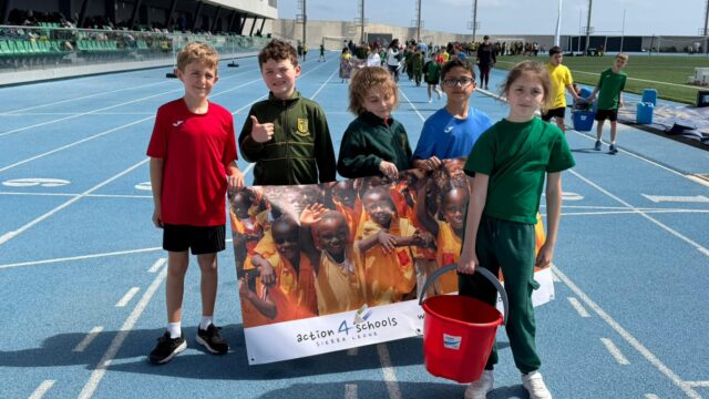 The day began with a teacher road race featuring seven members of staff, cheered on by pupils gathered around the track. More than 60 pupils had secured sponsorship for the runners, raising funds that will go towards building a second water well in Sierra Leone through BFUP.