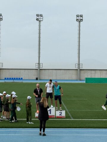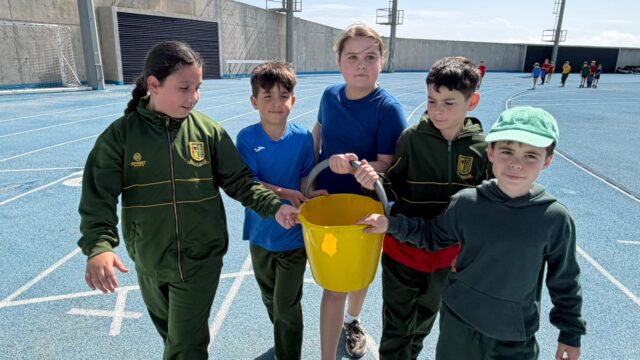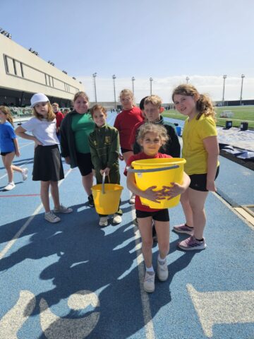 The “Walk for Water” saw children working in teams of four to carry buckets of water around the track, offering what the school described as a practical insight into the daily realities faced by many people around the world.