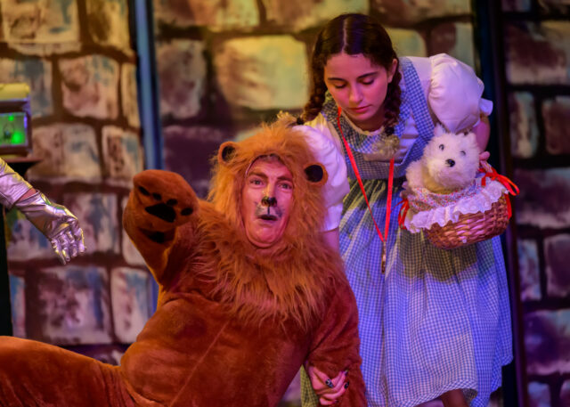 They meet Scarecrow (Tim Seed), Lion (Oli Tavares) and Tinman (Harry Kumar) before they set off. Scarecrow needs a brain, Lion needs courage and Tinman needs a heart. Dorothy and aunt Emily need to be transported back to Kansas from whence they had been uprooted by a tornado. The story is evergreen and the journey on the yellow brick road to Emerald city is beset with adventures and misadventures, fertile ground for much silliness, great musical dance numbers and magical happenings that the evil witch wants to spoil and control.