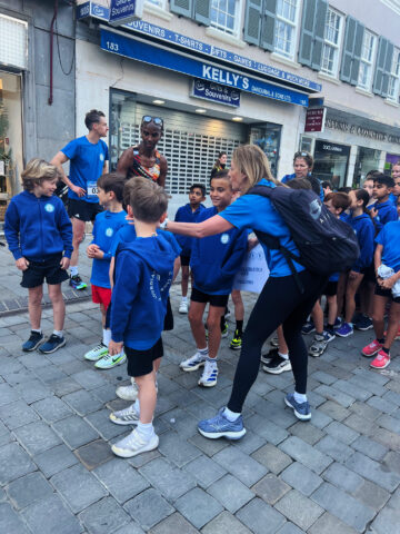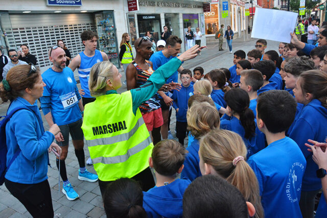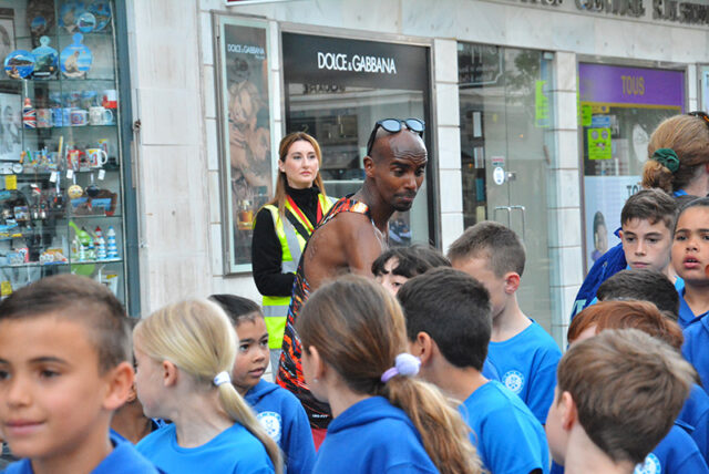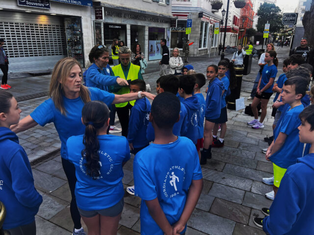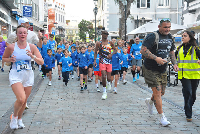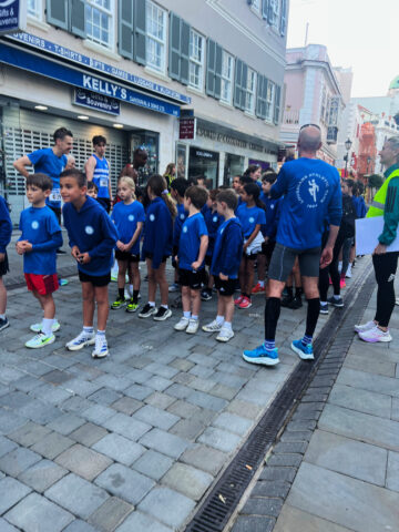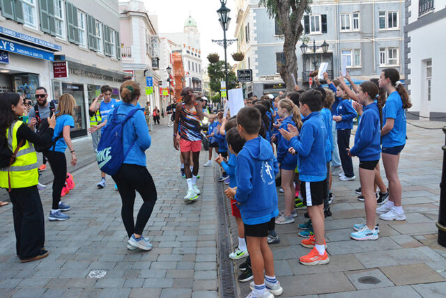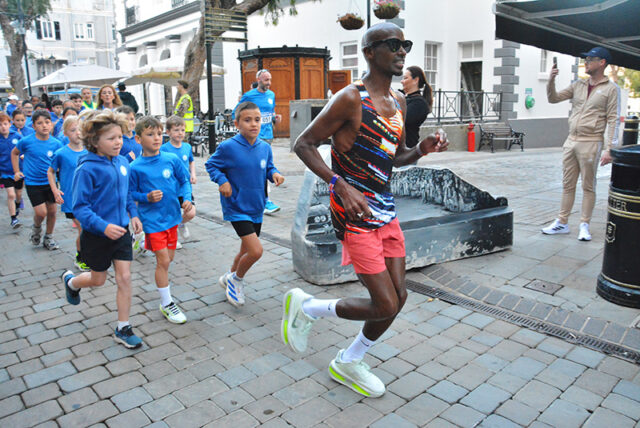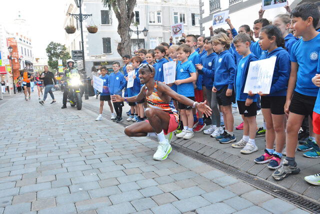 Emphasising the importance of “finishing together as a team,” Sir Mo led the youngsters down the final stretch through Main Street to Casemates, where they were met by a large crowd awaiting his arrival at the finish line.